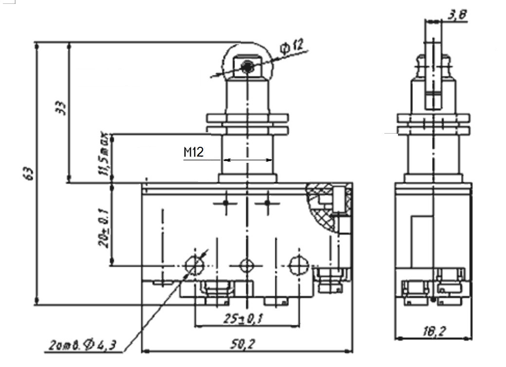 Тип привода: толкатель М12 с роликом